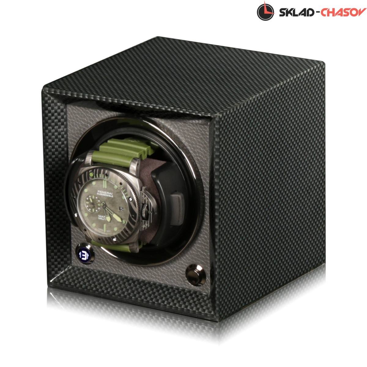 Новая модель в совершенстве удобства в быту. Корпус из карбона, внутри выстлано чёрной кожей, новый держатель для часов от "PD", алюминиевая рамочка, фиксатор часов внутри стакана в любом месте. Шкатулка работает от адаптера 220 вольт, а также 2 батареек класса C. Совершенный вариант с возможностью подзавода любых часов, любой сложности. Три направления вращения и регулировка количества оборотов позволяет хранить и подзаводить часы в любом месте. Оригинальный электронный датчик позволяет видеть ваши настройки в круглом окошке (инновации). Адаптер в комплекте. Фирменная-подарочная коробка "PD". Фирменная гарантия 1 год.