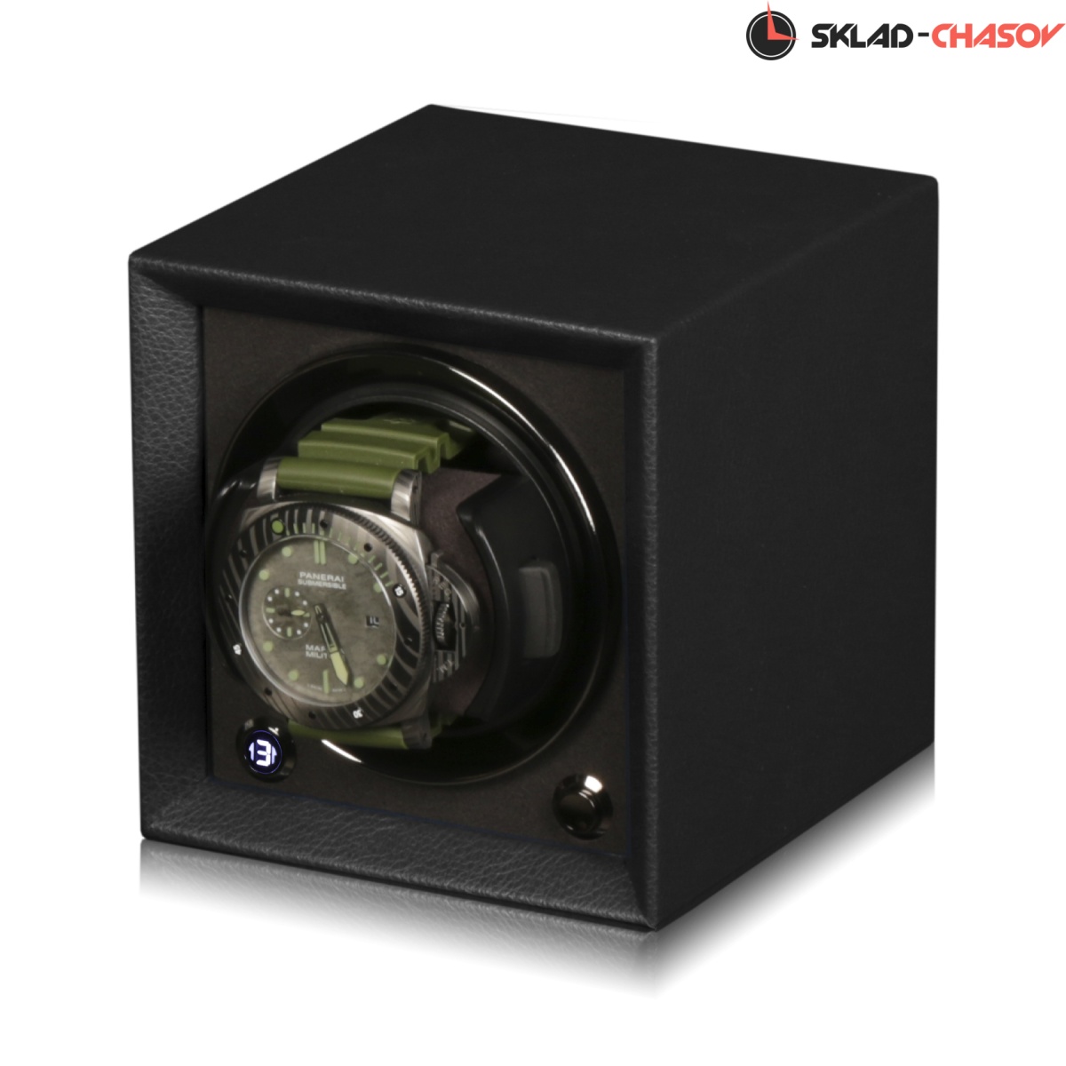 Новая модель в совершенстве удобства в быту. Корпус из чёрной кожи, внутри выстлано чёрной кожей, новый держатель для часов от "PD", алюминиевая рамочка, фиксатор часов внутри стакана в любом месте. Шкатулка работает от адаптера 220 вольт, а также 2 батареек класса C. Совершенный вариант с возможностью подзавода любых часов - любой сложности! 3 направления вращения и регулировка количества оборотов позволяет хранить и подзаводить часы в любом месте. Адаптер в комплекте. Фирменная - подарочная коробка "PD". Фирменная гарантия 1 год.