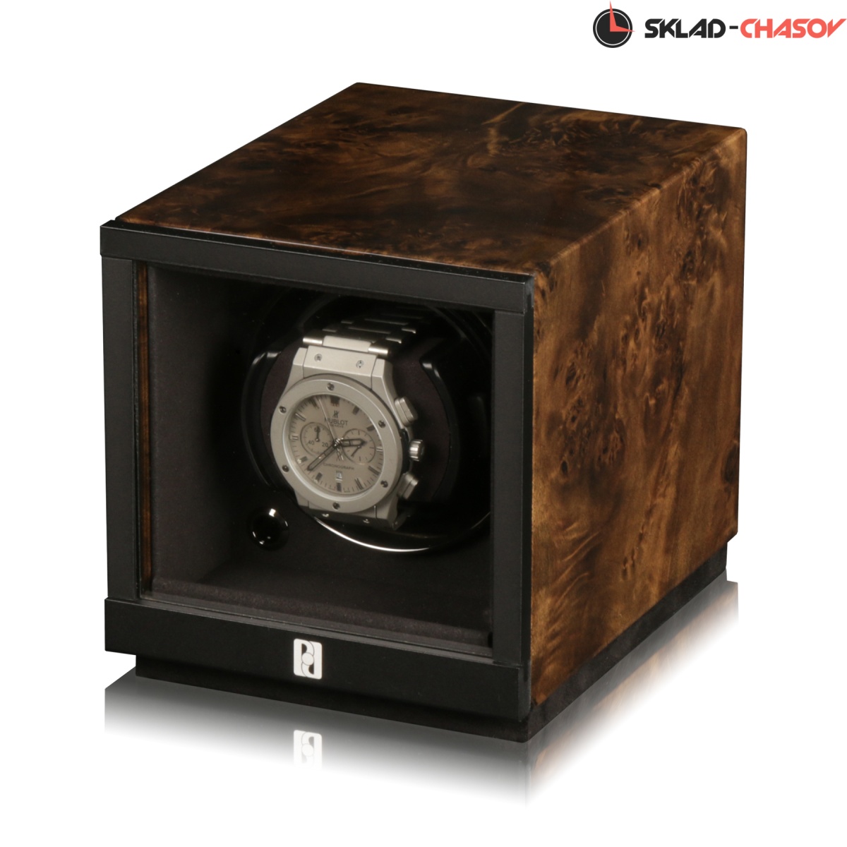 Новая, инновационная шкатулка премиум класса выполнена из элитного дерева «грецкий орех», внутри выстлано черно - серой микрофиброй, чёрная немецкая фурнитура с натуральным стеклом придаёт защищенность вашим часам и сверхтихую работу новейшего мотора. Работает от сети 220 вольт или 2 батареек класса С. Подзавод любых часов - любой сложности (все возможные регулировки).