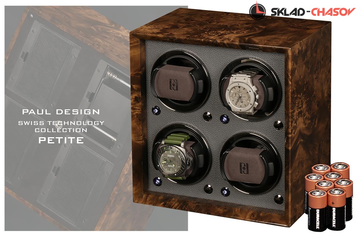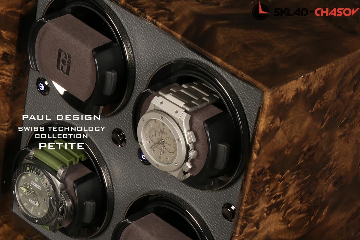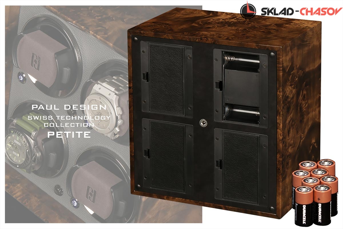 Новая модель создана с красивым внешнем дизайном и удобством эксплуатации! Открытый корпус выполнен из красивого и редкого дерева «грецкий орех», внутри обшито чёрной микрофиброй, немецкая чёрная фурнитура, удобные телескопические держатели для часов, позволяет подзаводить любые часы — любой сложности, работа от сети 220 в и встроенного блока батареек класса С.
