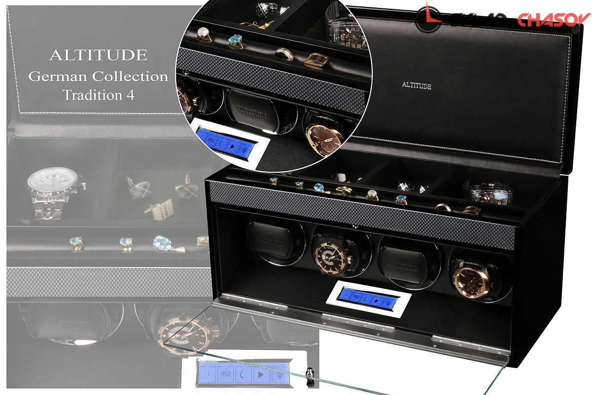 Основное предназначение шкатулки — автоматических независимый подзавод 4-х часов любой сложности. Выбор программ осуществляется при помощи электронного табло последнего поколения "touch screen".