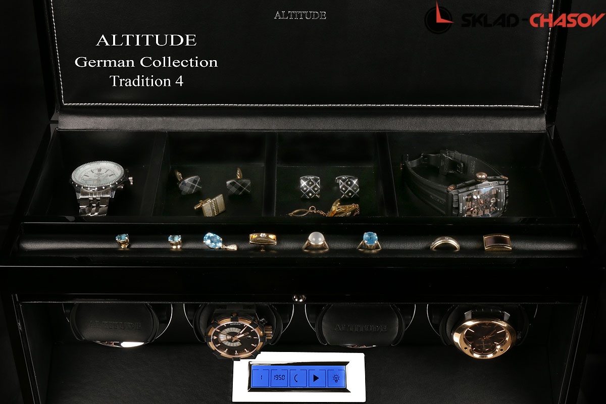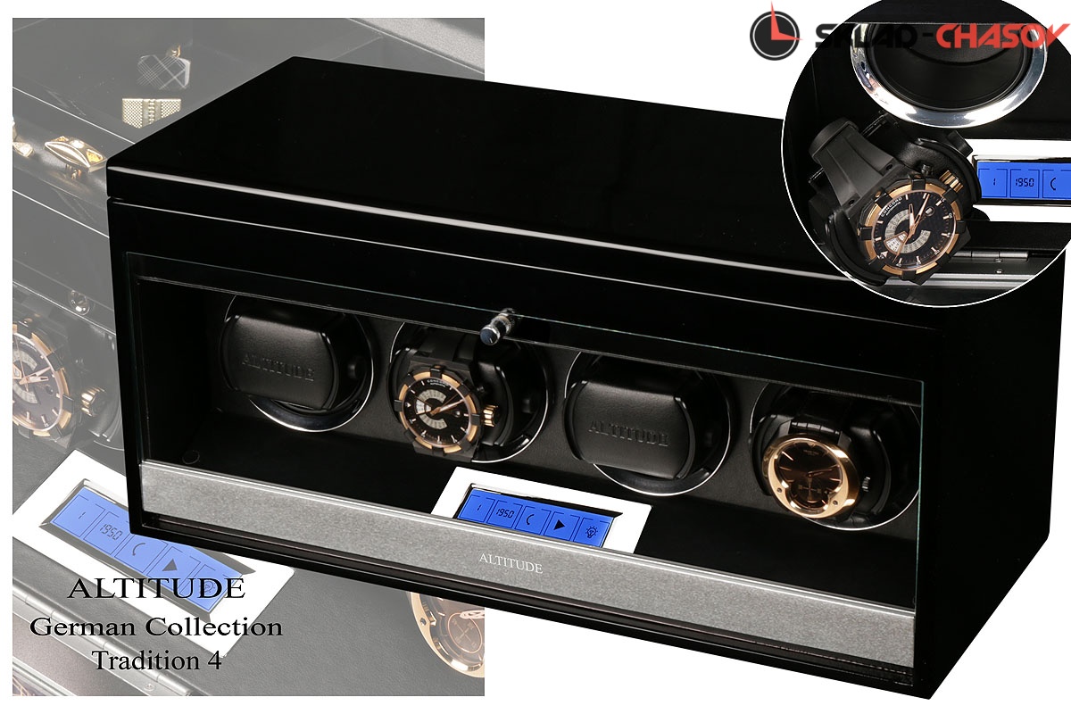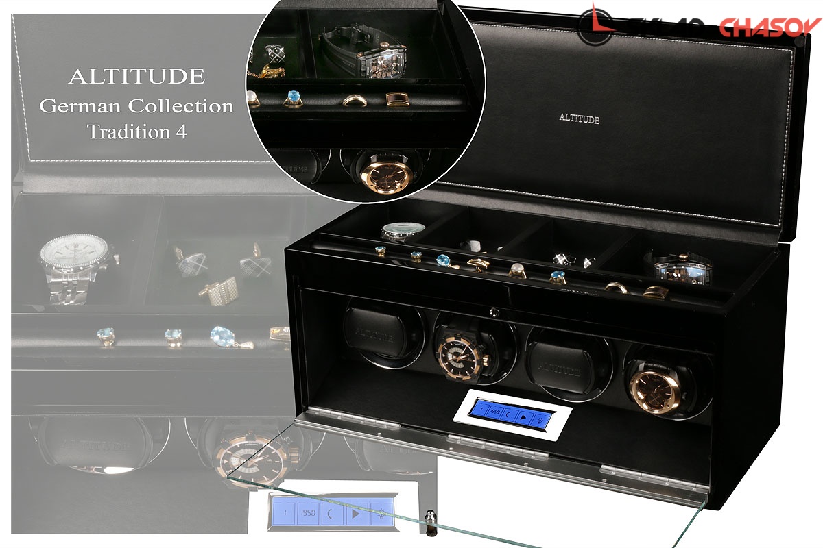 Основное предназначение шкатулки — автоматических независимый подзавод 4-х часов любой сложности. Выбор программ осуществляется при помощи электронного табло последнего поколения "touch screen".