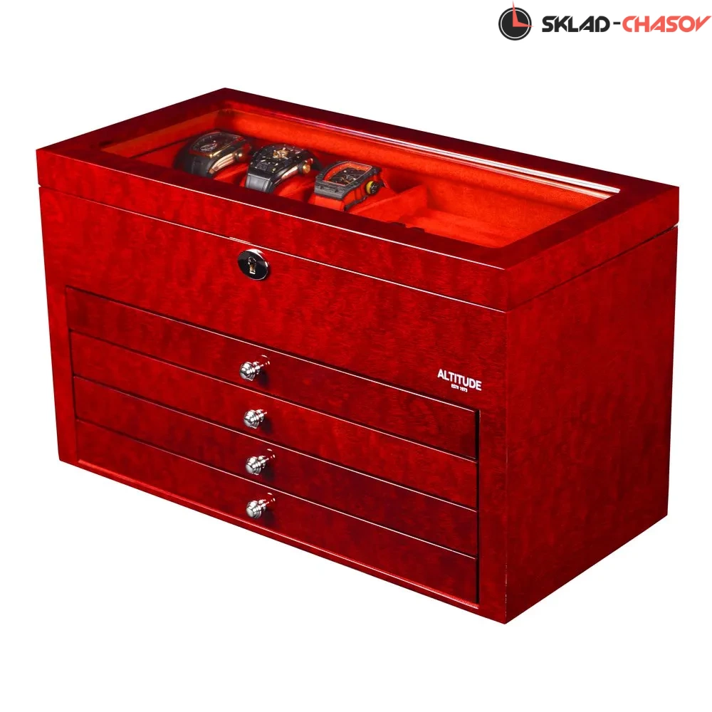 Шкатулка Altitude G014RRF — это выразительный дизайн, натуральные породы дерева и профессионально организованное пространство для хранения часов и украшений.