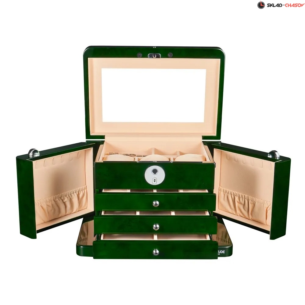 встроенным зеркалом на внутренней стороне крышки, которое удобно использовать при подборе украшений.