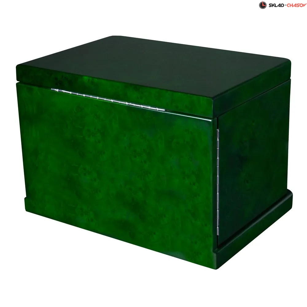 Корпус выполнен в насыщенной зелёном дереве "канадский клён" и покрыт глубоким глянцевым лаком. Округлённые формы и изогнутые линии придают изделию солидность и визуальную мягкость, а поверхность притягивает взгляд богатством древесного рисунка.