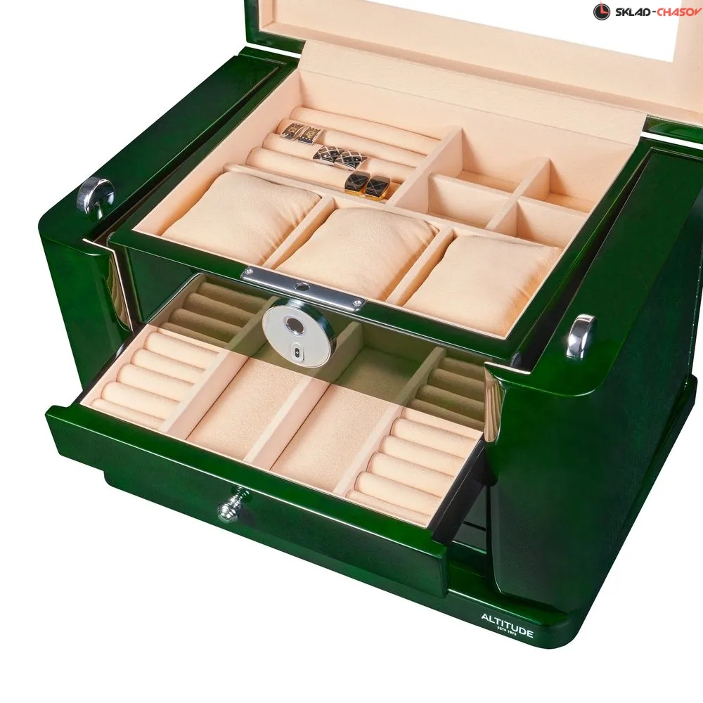 Шкатулка для украшений с отпечатком Altitude TG504GRC-W-FP — это образец изысканного дизайна и продуманной функциональности, сочетающий классическую эстетику с современными технологиями безопасности.