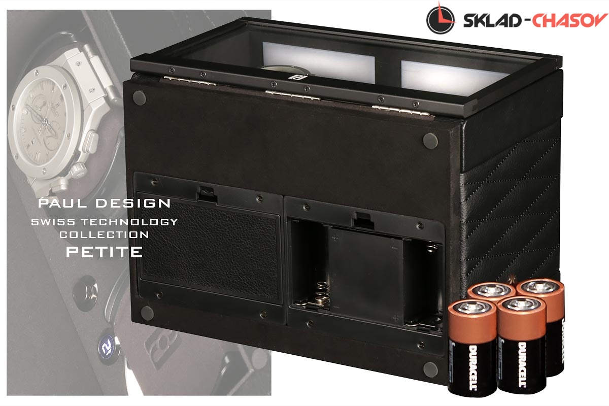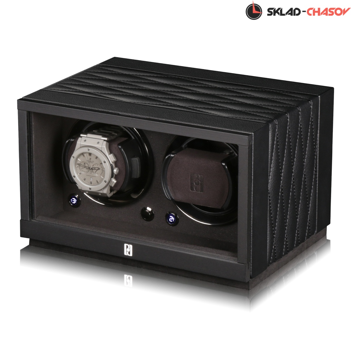 Новая модель в совершенстве удобства в быту. Корпус из черной кожи с стежкой капитоне, внутри выстлано чёрно-серой микрофиброй, новый держатель для часов от "PD", алюминиевая рамочка, фиксатор часов внутри стакана в любом месте. Немецкая чёрная фурнитура премиум. Новая технология бесшумных моторов! Шкатулка работает от адаптера 220 вольт, а также 4 батареек класса C. Совершенный вариант с возможностью подзавода любых часов - любой сложности! Три направления вращения и регулировка количества оборотов позволяет хранить и подзаводить часы в любом месте. Оригинальный электронный датчик позволяет видеть ваши настройки в круглом окошке (инновации). Адаптер в комплекте. Фирменная-подарочная коробка "PD".