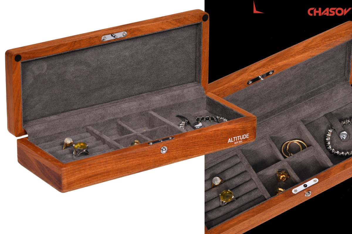 Шкатулочка выполнена из качественного дерева тополь, открывается с нажатием кнопочки, внутри выстлано качественной темно-серой микрофиброй, разные варианты хранения ваших любимых украшений.