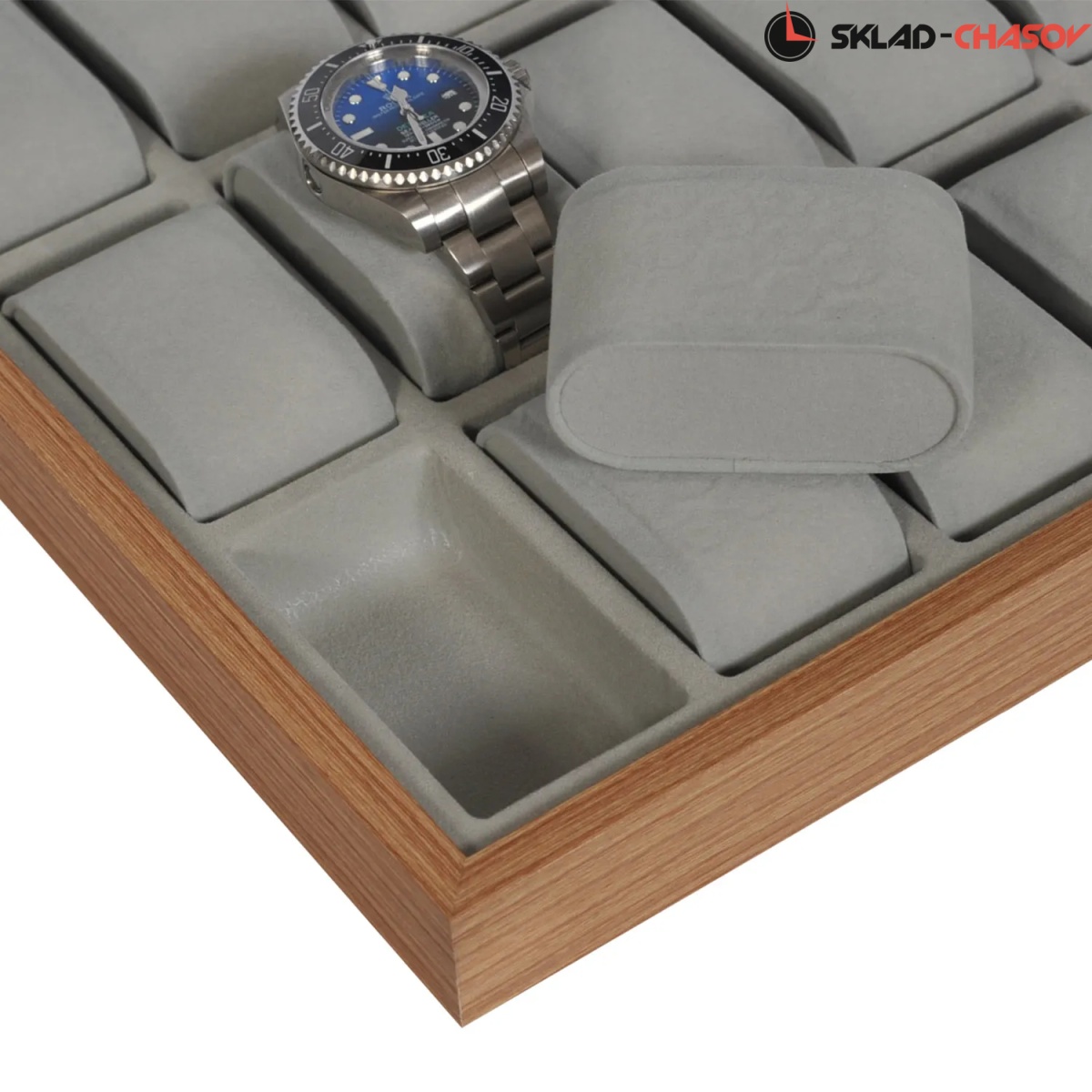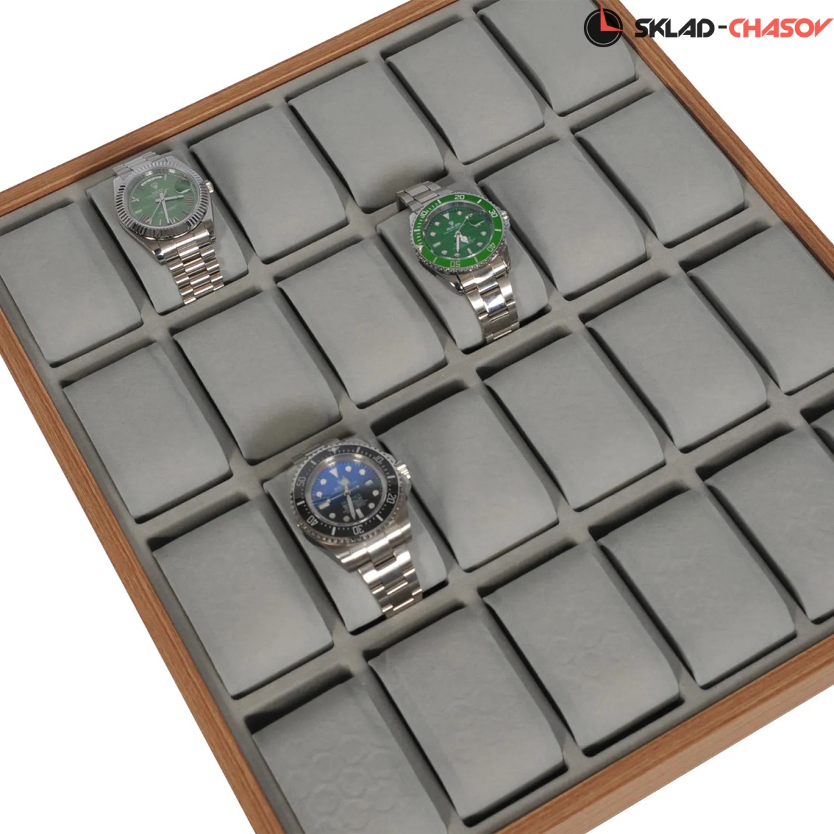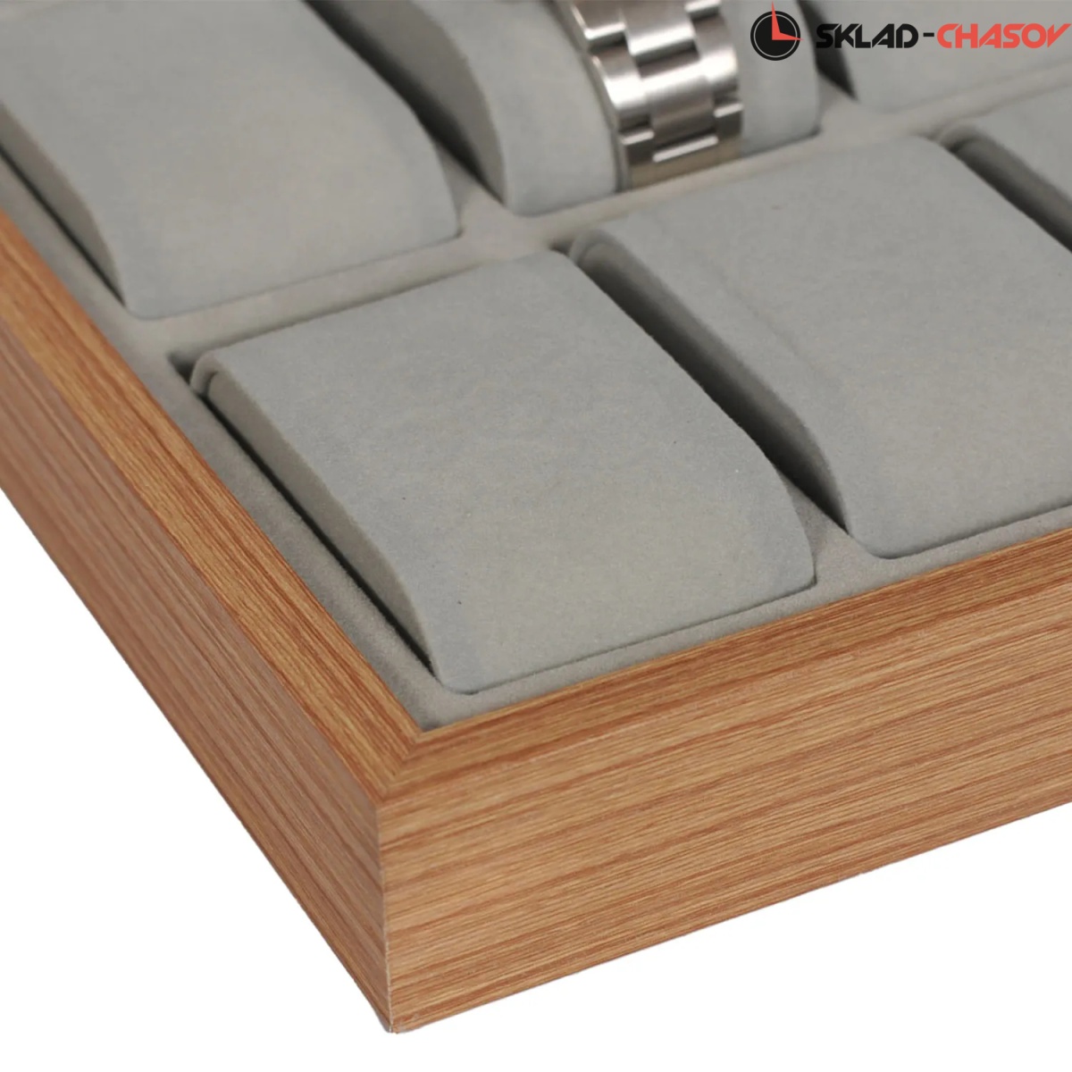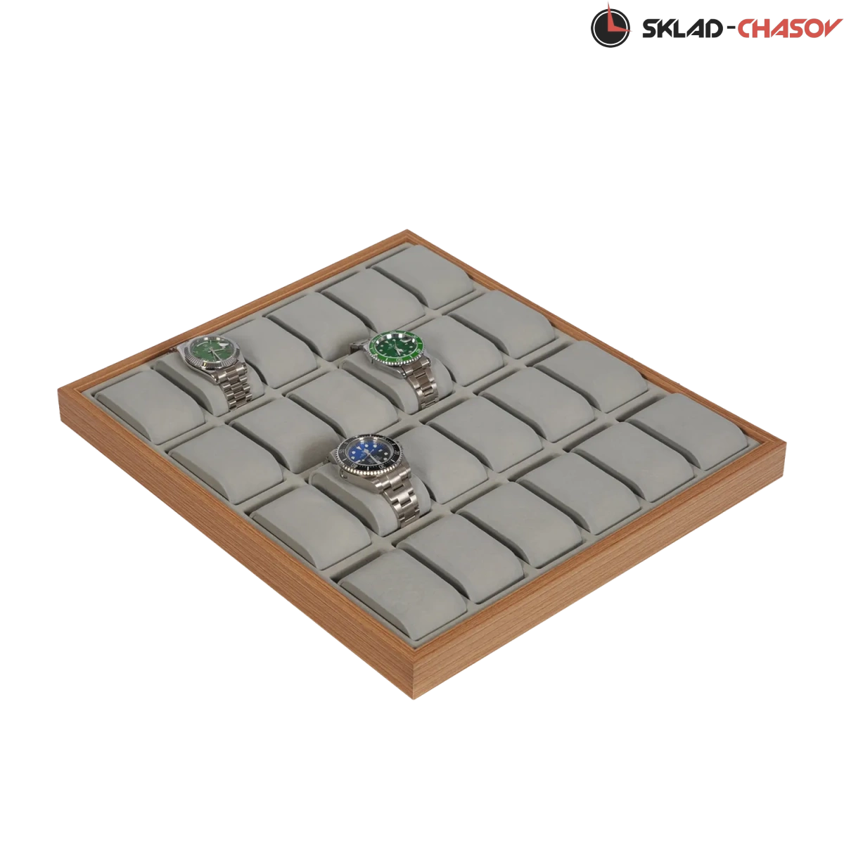 Открытый лоток для хранения 24-х наручных часов с подушечками. Дерево «клён».