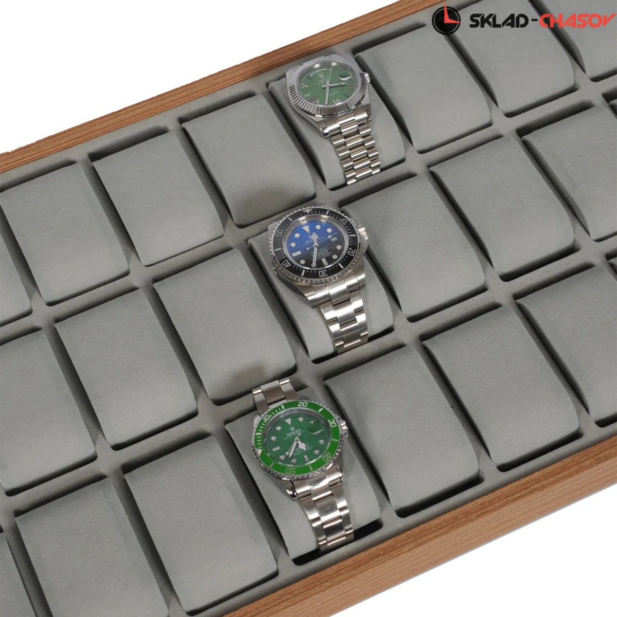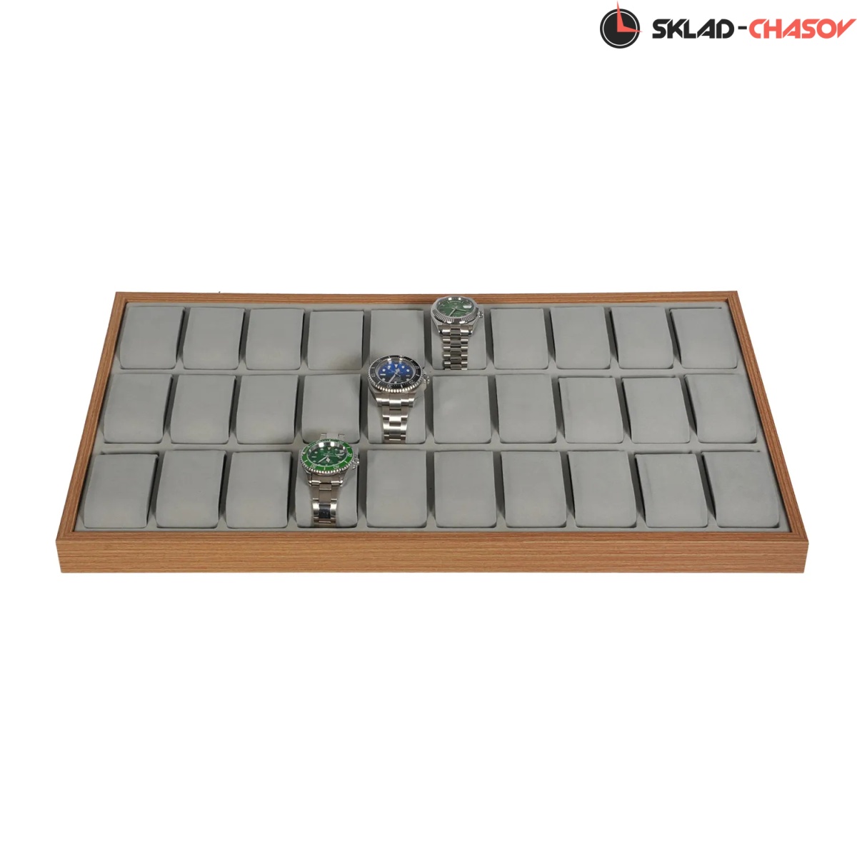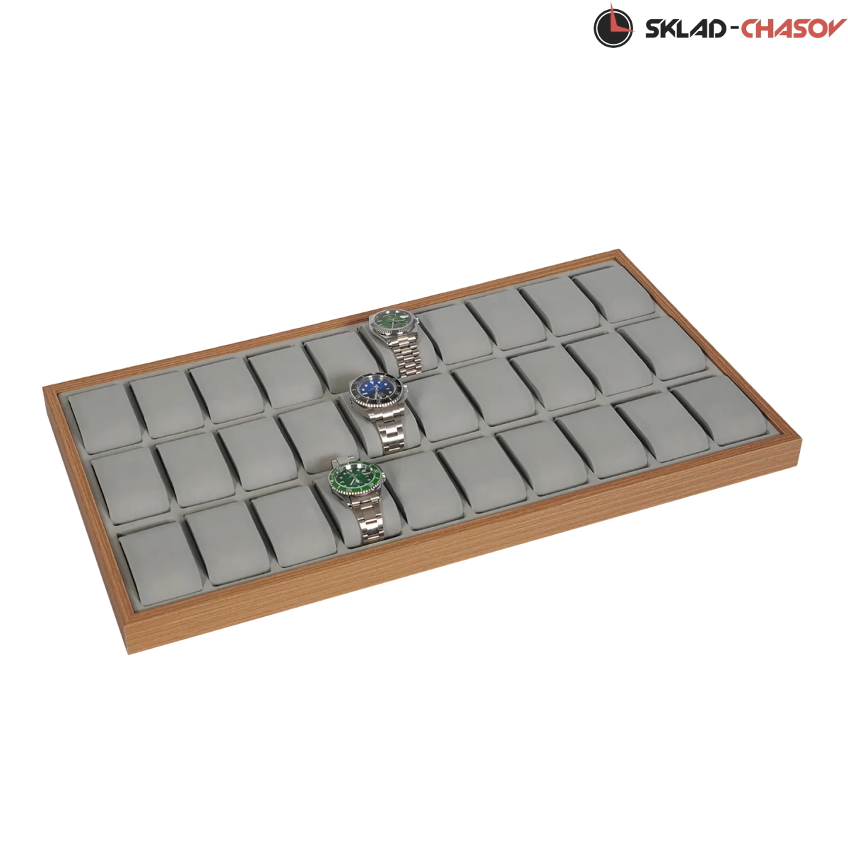 Открытый лоток для хранения 36-ти наручных часов с подушечками. Дерево «клён».