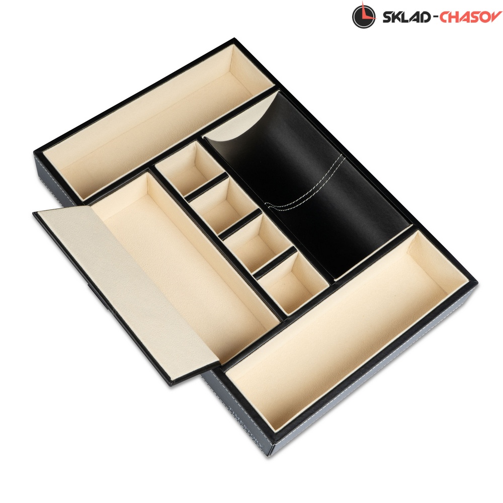Невероятно прочный и стойкий к небольшим механическим воздействиям вкладыш, предназначен для хранения ювелирных украшений. Специальные ячейки и подходит для удобного хранения колец, сережек и запонок. В дополнении к элегантности, у вкладыша есть дополнительный ящик с крышкой под хранение любых украшений.
