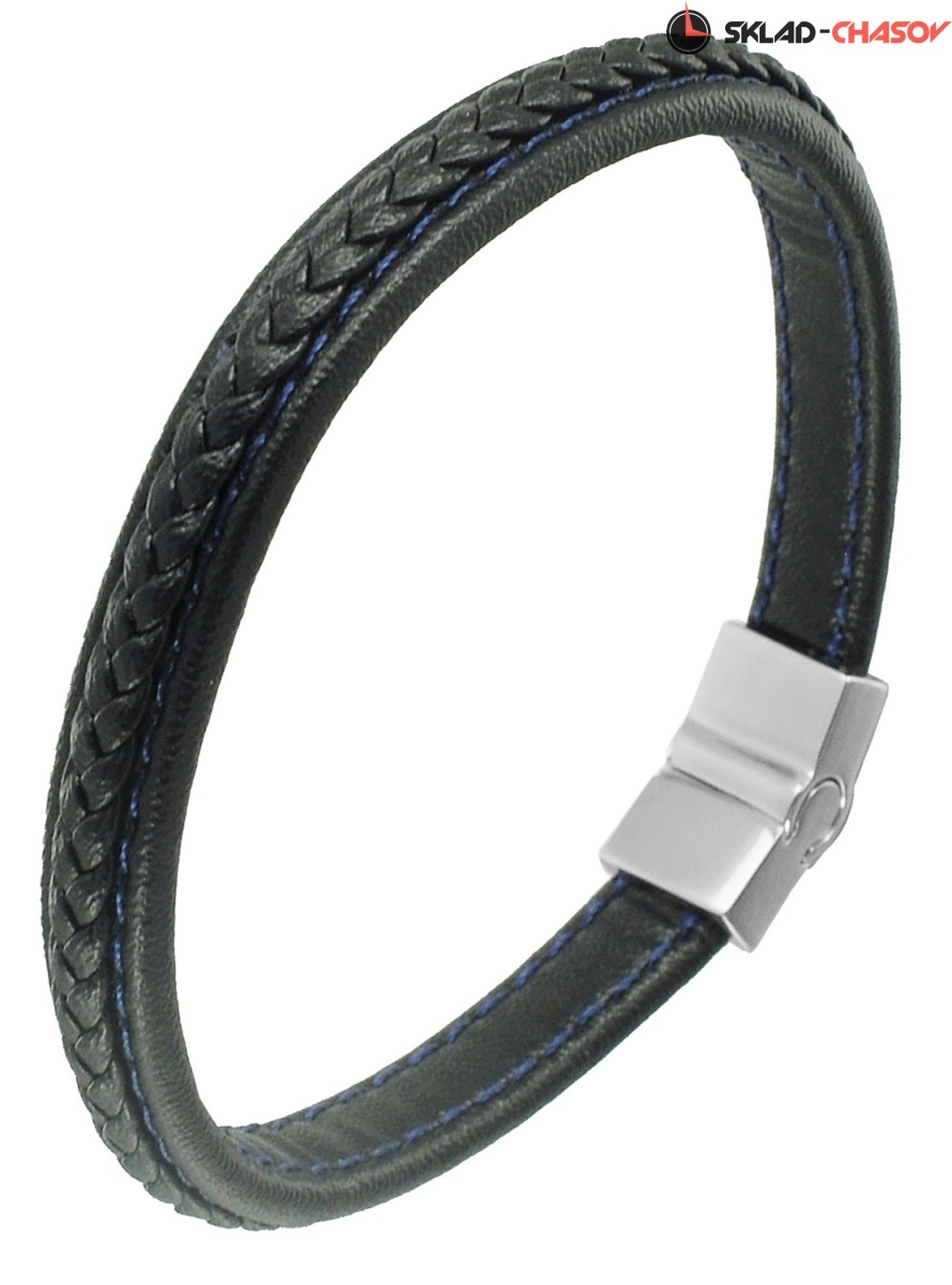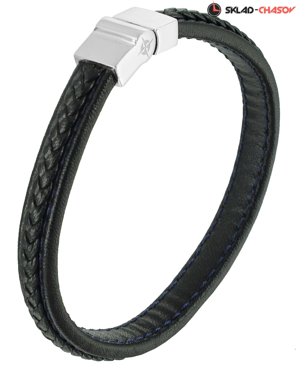 Браслет из натуральной кожи черного цвета дополнен надежной магнитной застежкой из нержавеющей стали с логотипом бренда.