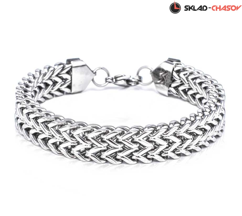 Браслет Greenwich в виде массивной цепи сделан из прочной нержавеющей стали, известной своими гипоаллергенными свойствами. Его украшением служит необычное плетение и зеркальная полировка.