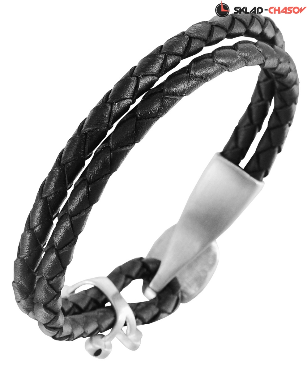 Браслет из натуральной кожи черного цвета с оригинальными декоративными элементами, сделанными из прочной нержавеющей стали.