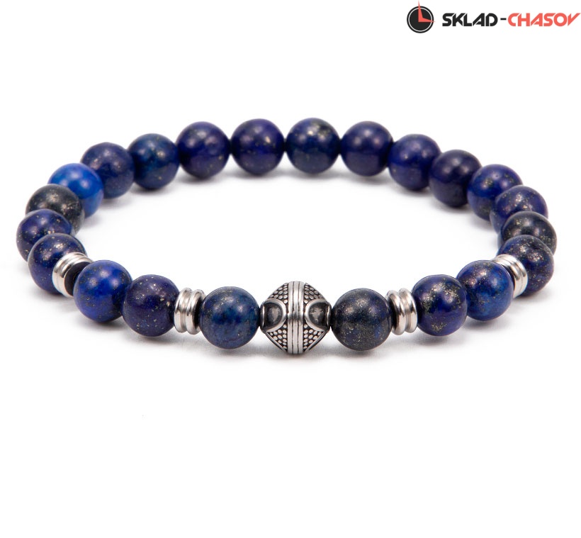 Бусины браслета Greenwich сделаны из лазурита различных оттенков синего: считается, что этот камень помогает изменить судьбу в лучшую сторону. Он хорошо сочетается с бусинами из гипоаллергенной нержавеющей стали.
