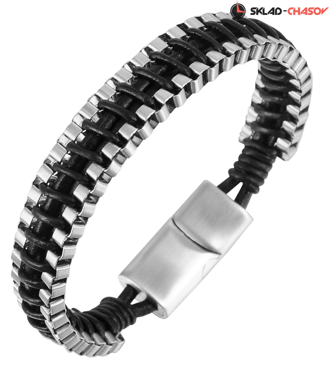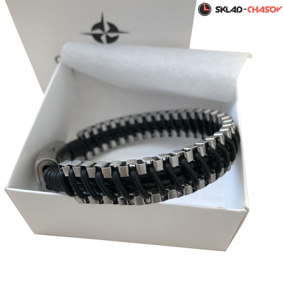 Благодаря плетению браслет удобно ложится на руку. Стальная магнитная застежка с логотипом бренда надежно удерживает браслет на запястье.
