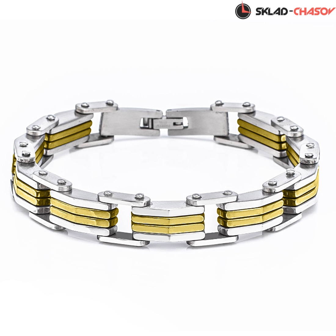 Эффектно смотрится сочетание полированных сегментов и звеньев с PVD-покрытием черного цвета.