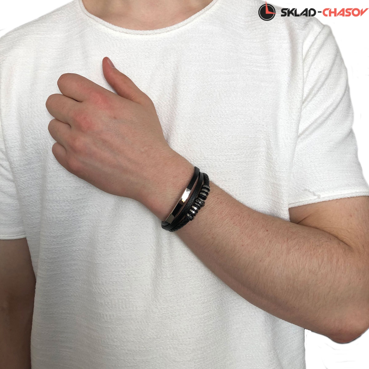 Стальная застежка с магнитным креплением позволяет надежно удерживать браслет на запястье.