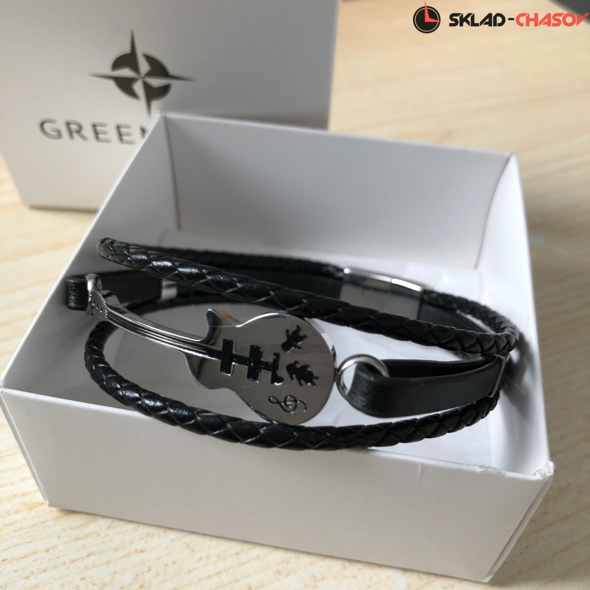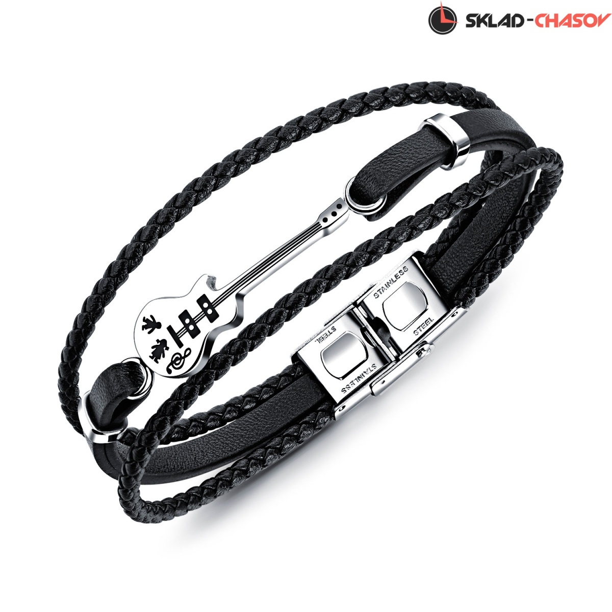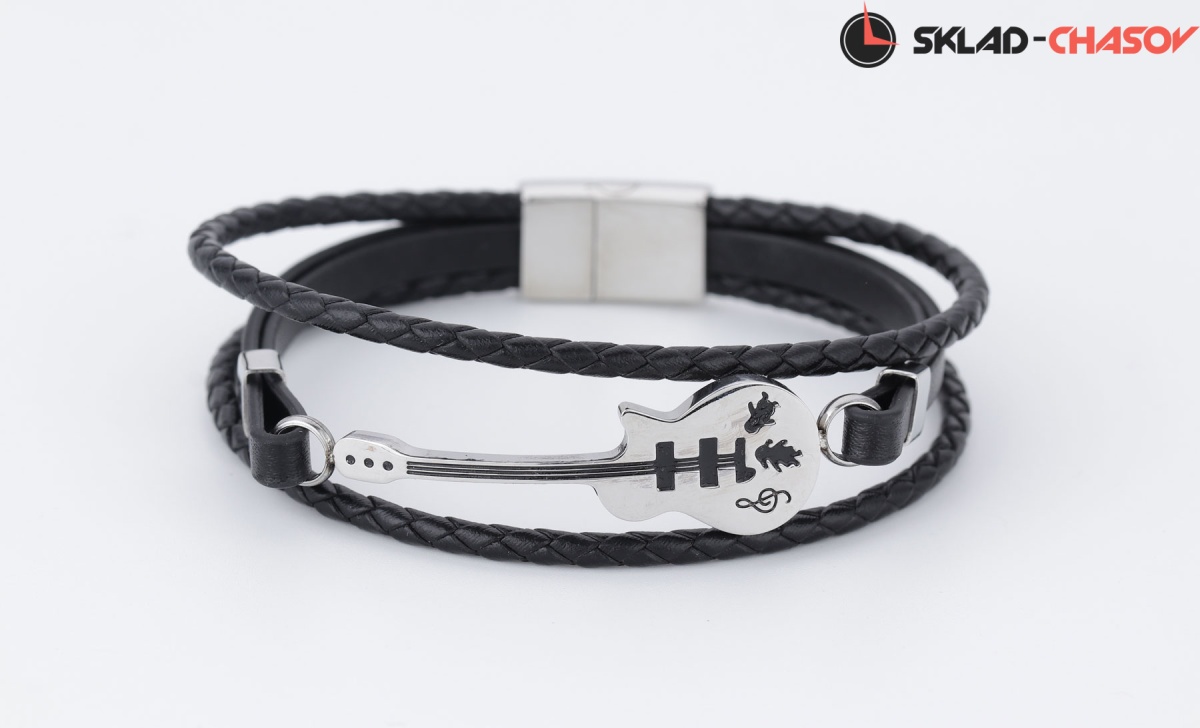 В центре композиции браслета – эффектная гитара, выполненная из гипоаллергенной нержавеющей стали.