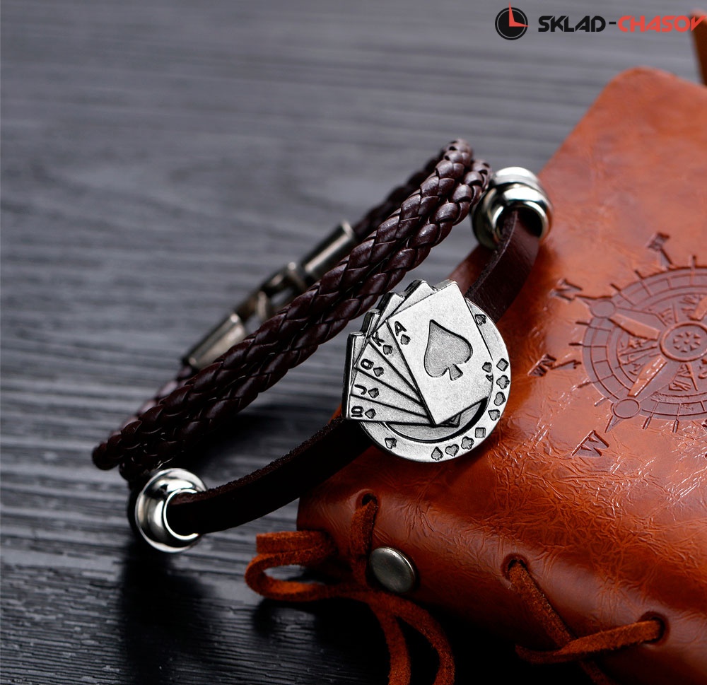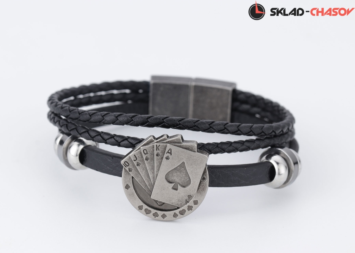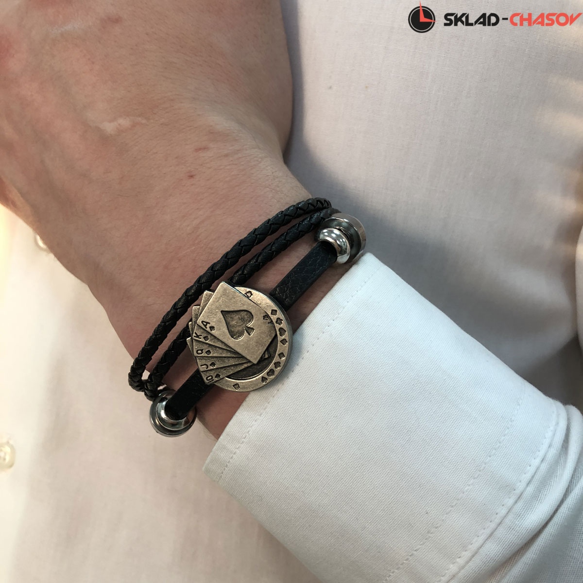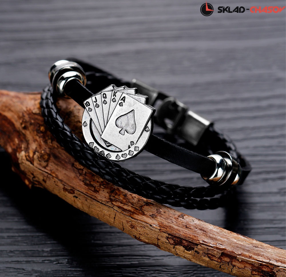 В центре — декоративный элемент из нержавеющей стали с изображением игральных карт — идеально для тех, кто ценит элемент игры в повседневной жизни и любит испытывать свою удачу.