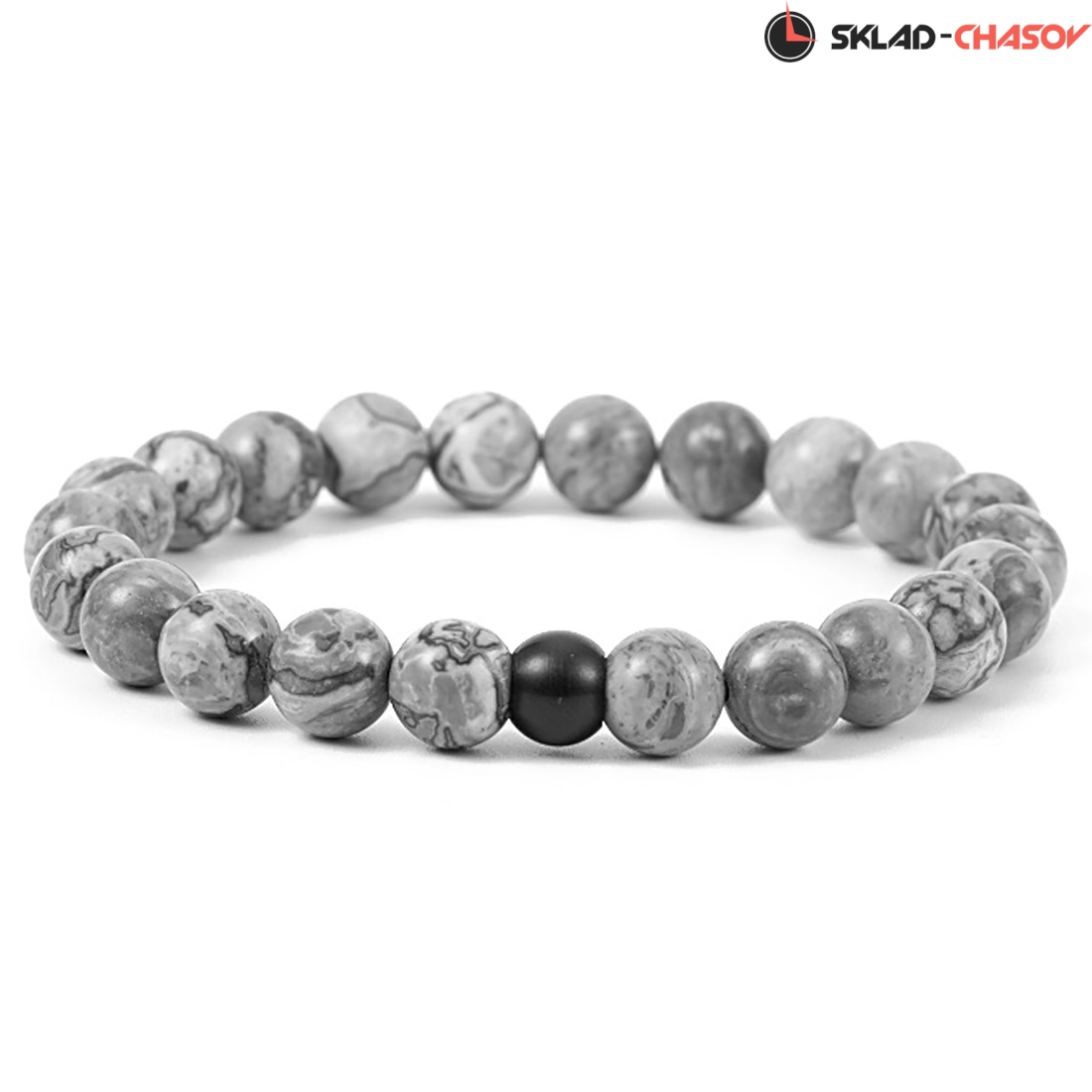 Элегантный браслет сочетает несколько видов бусин: из яшмы, черного агата и нержавеющей стали с PVD-покрытием из желтого золота. Прочная эластичная нить надежно удерживает аксессуар на запястье. Браслет Greenwich соответствует европейским нормам директивы по безопасности для человека RoHS.