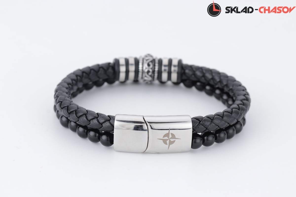 Браслет Greenwich состоит из двух частей: нити натуральной кожи плотного плетения и бусин из черного агата. Обе части удачно гармонируют друг с другом, создавая универсальный и стильный аксессуар. Дополняют образ декоративные элементы их нержавеющей стали, известной своими гипоаллергенными свойствами.