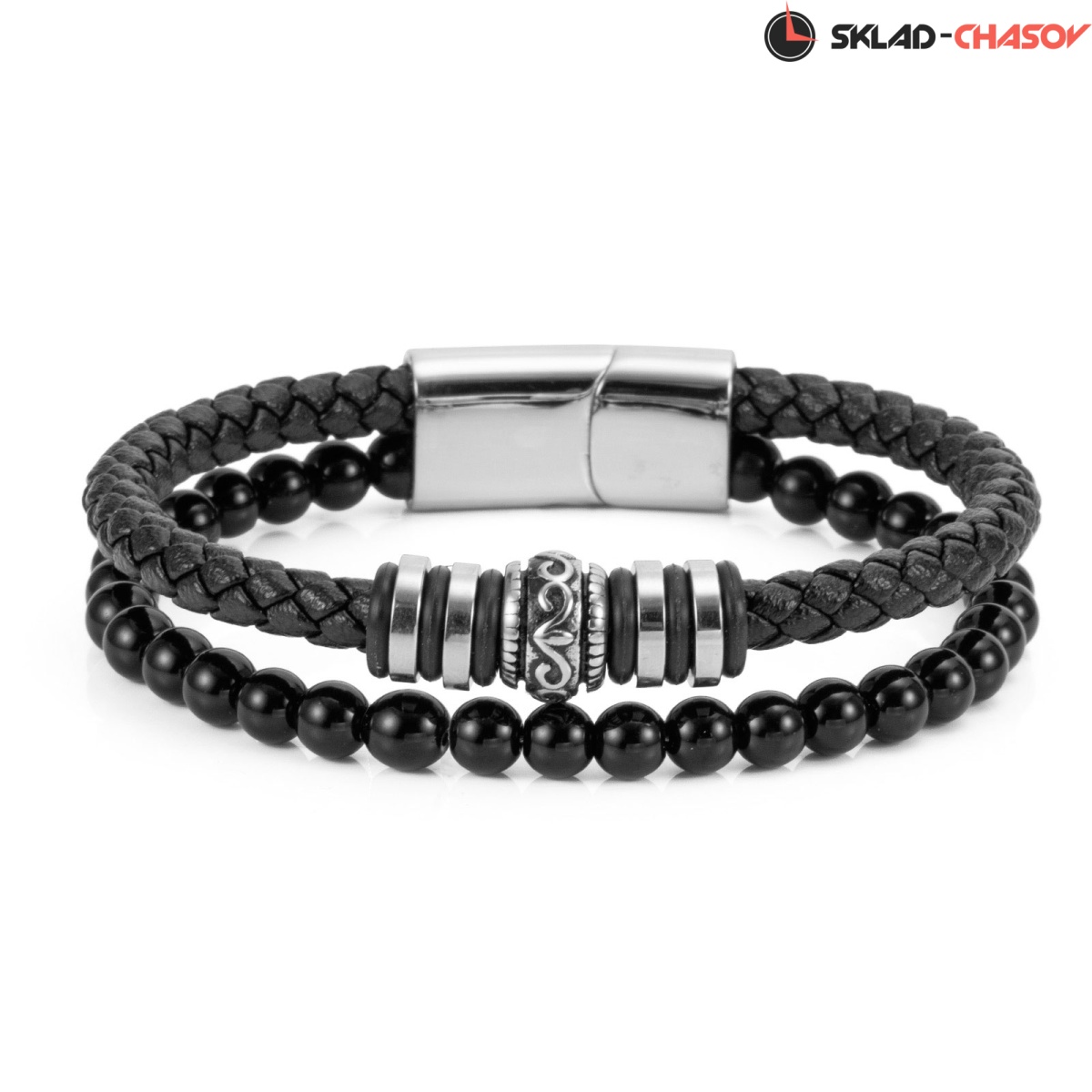 Магнитная застежка из нержавеющей стали с логотипом бренда удобна в использовании и надежно удерживает браслет на запястье.