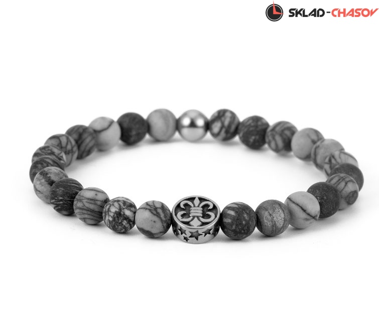 Бусины браслета Greenwich сделаны из яшмы – каждая непохожа на другую из-за необычной игры красок. Дополняют образ декоративные элементы из гипоаллергенной нержавеющей стали.