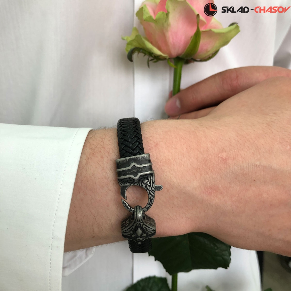 Стальная застежка - карабин выполняет одновременно две функции: надежно удерживает браслет на вашем запястье и украшает, делая образ этого стильного брутального аксессуара завершенным.