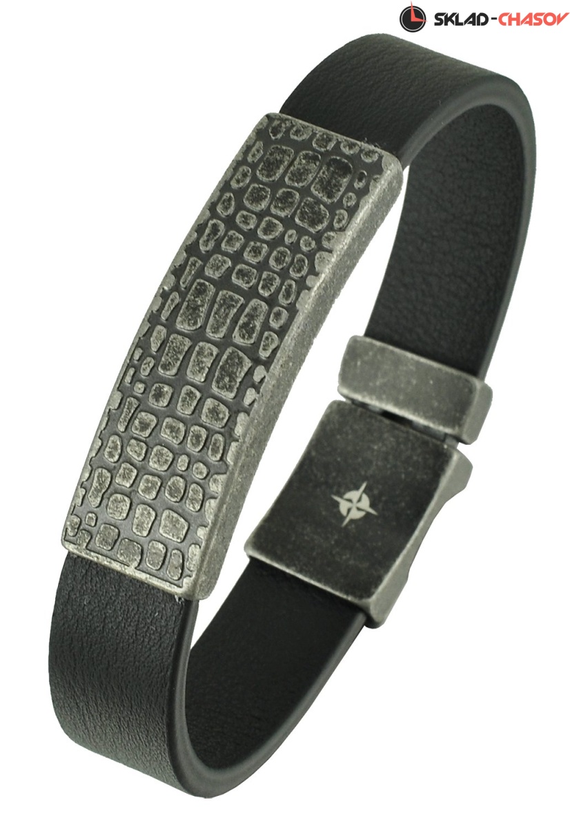 Браслет из натуральной кожи, мягкой и, одновременно, стойкой к износу. Он украшен пластиной из нержавеющей стали с объемным рисунком. Стальная застежка надежно удерживает браслет на запястье.