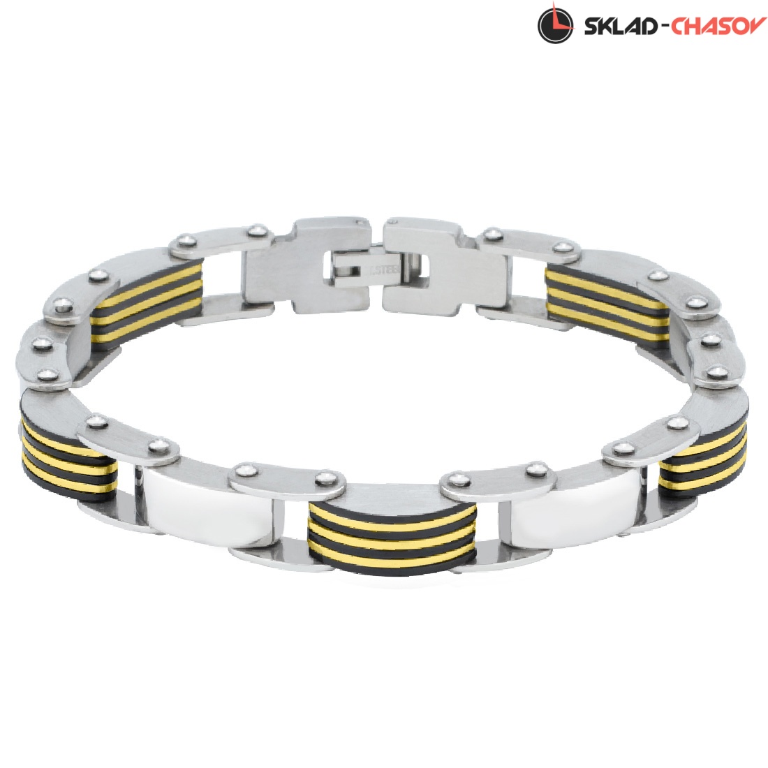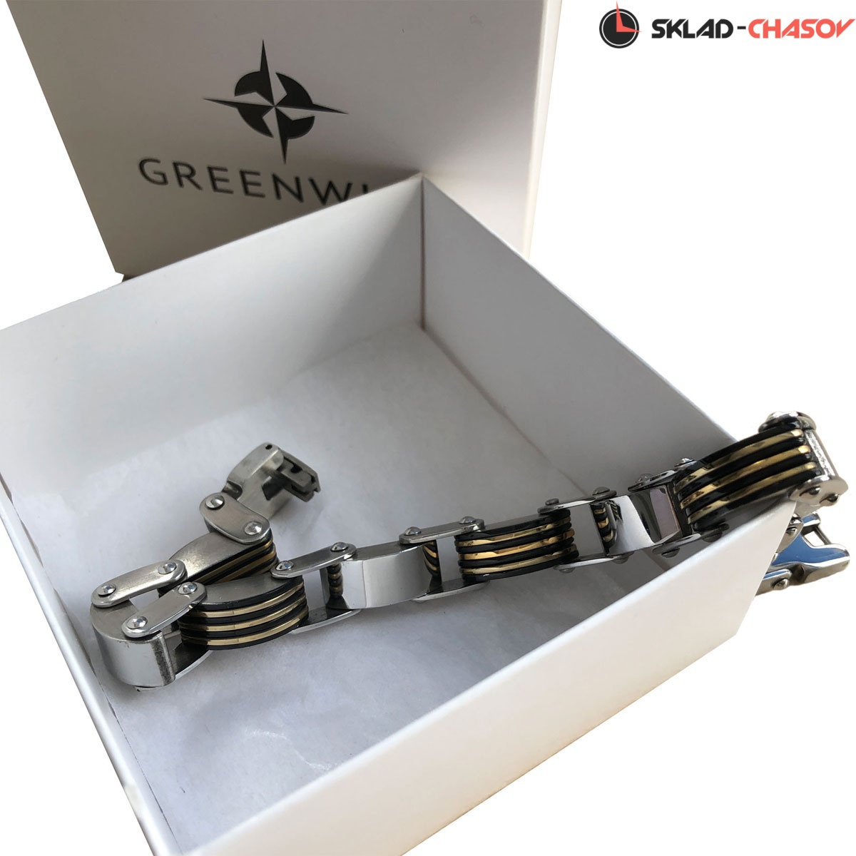 Браслет Greenwich оригинального плетения сделан из нержавеющей стали, известной своими гипоаллергенными свойствами. Эффектно смотрится сочетание полированных сегментов и звеньев с PVD-покрытием черного цвета.